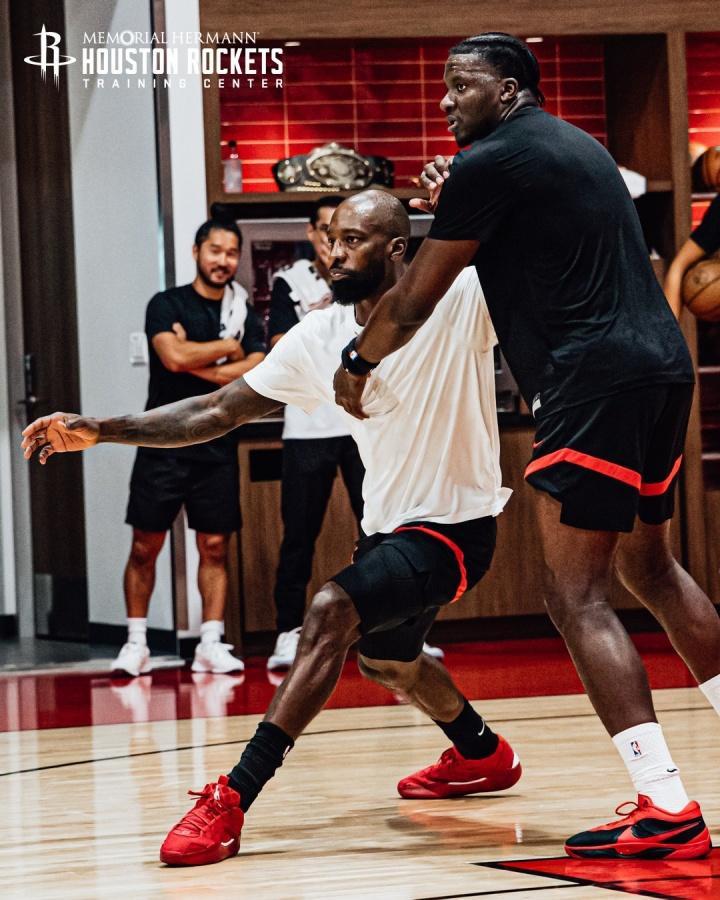 卡佩拉虽然上赛季在老鹰队沦为替补,但是他也能够场均贡献9分、8篮板级别的数据。而杰夫·格林上赛季甚至还担任过火箭队的首发,那时候小史密斯在训练当中手部骨折受伤,缺战了一个月左右的时间,除了伊森和阿门之外,乌度卡教练当时也让杰夫·格林在几场比赛里顶到了首发阵容当中。这位老将表现相当不错,既能完成篮下进攻,也能拉到外线去投出三分,在篮板保护、护筐方面也颇有建树。可以说,三位老将带两位新人的训练营非常能够锻炼人,尤其是能让小史密斯和阿门·汤普森增加更多的经验。